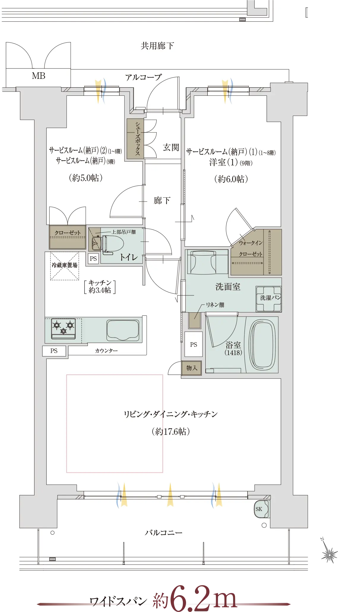 □ アルコーブ面積/3.44㎡(約1.04坪)