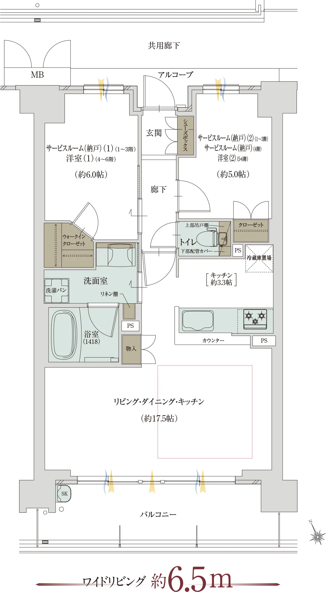 □ アルコーブ面積/3.44㎡(約1.04坪)