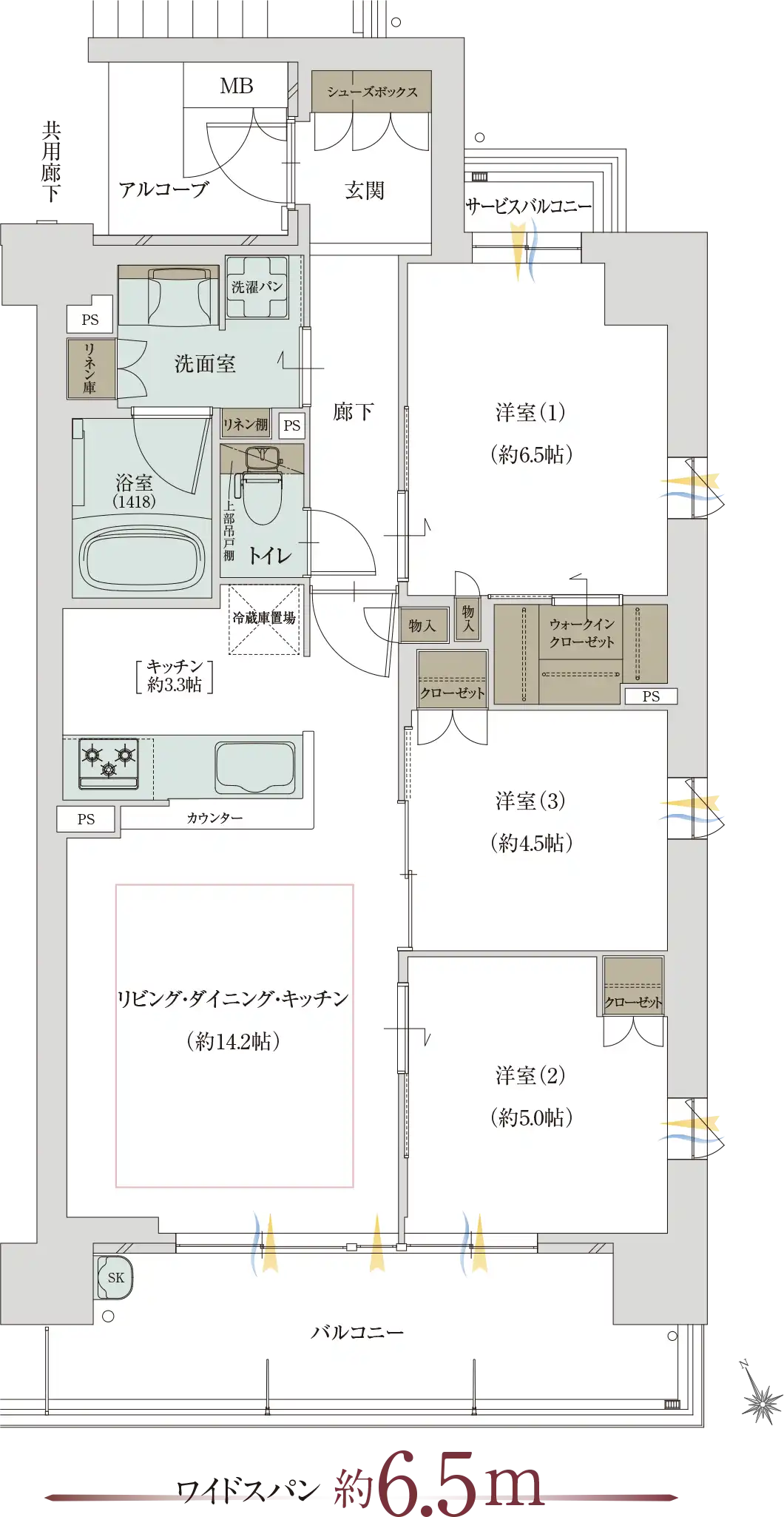 □ サービスバルコニー面積/1.30㎡(約0.39坪)
