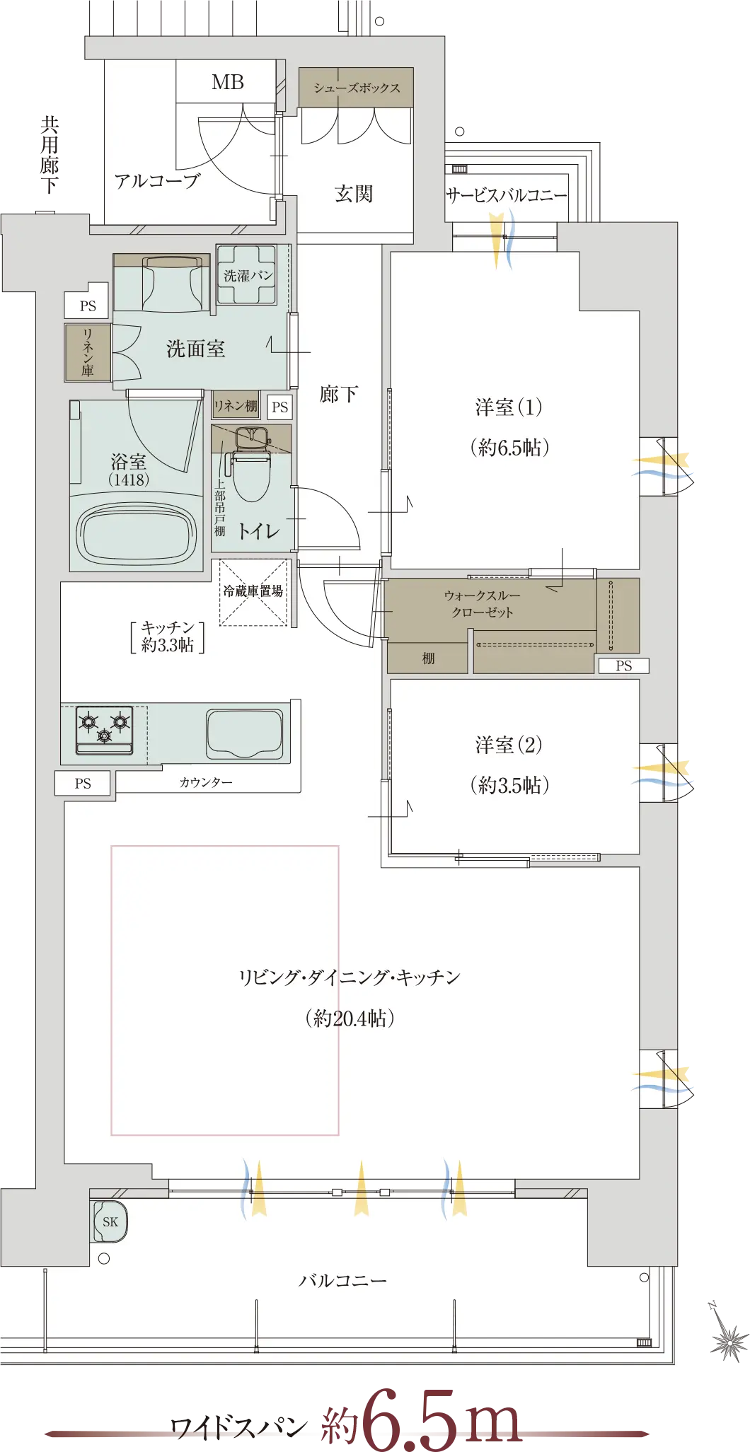 □ サービスバルコニー面積/1.30㎡(約0.39坪)