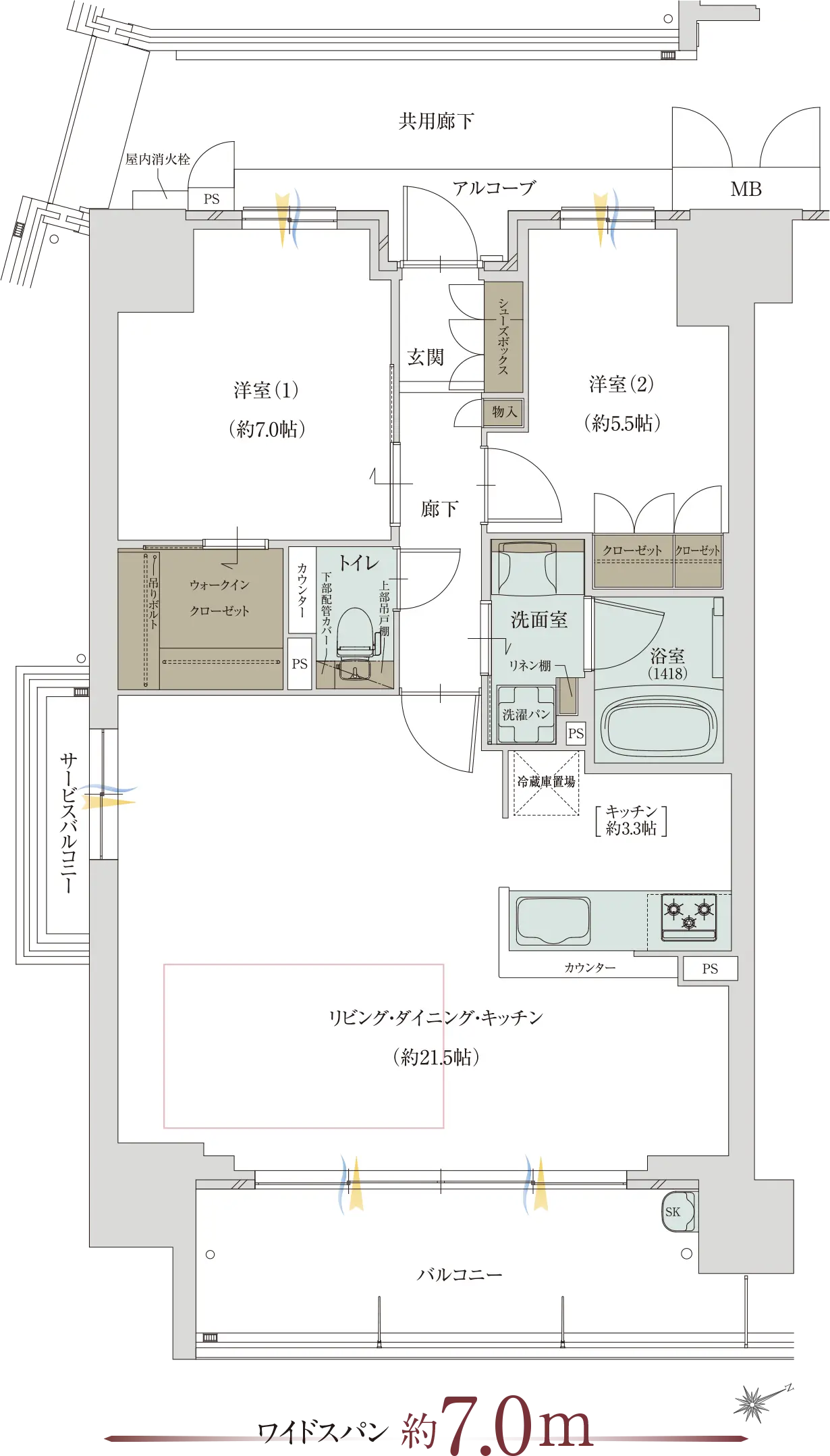 □ サービスバルコニー面積/2.40㎡(約0.72坪)